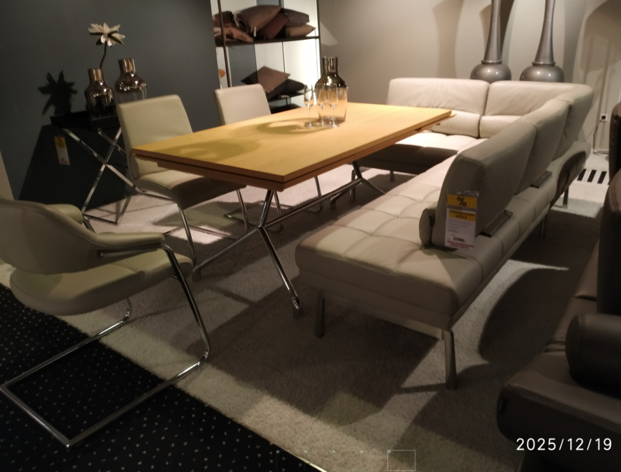ca. 163 x 162 Bank / H 87//49 x 90 x 63 -64 x 86 x 61-Stuhl// 160-260x 95/H77 cm Tisch
