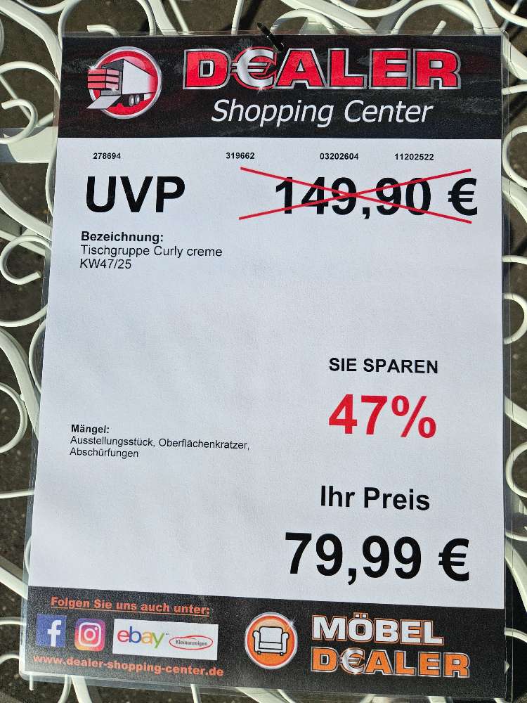 Tischgruppe Curly Creme statt 149,90€