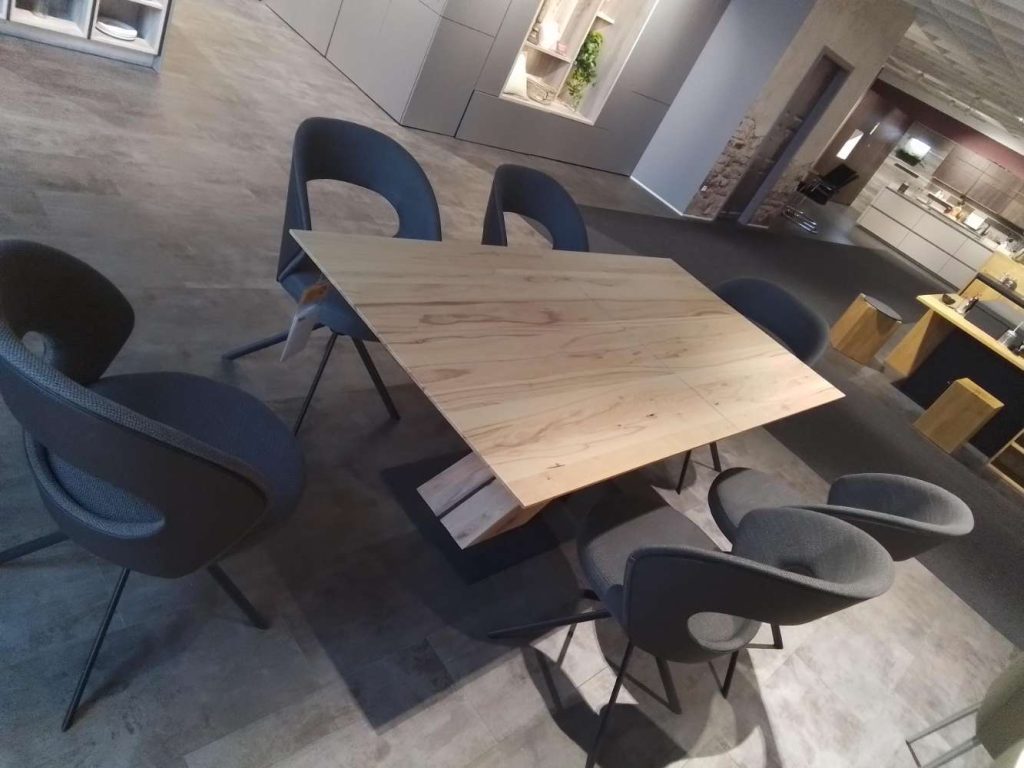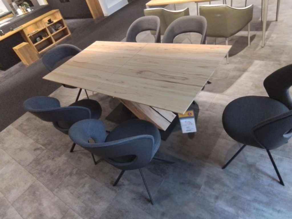 Riffbuche massiv gebürstet, Stoff/Leder 52F/12 braun, Tisch ca. 190/240x95cm inkl. Mittelauszug, 6x Stühle Bezug Sitzfläche Stoff und Rücken in Leder braun inkl. Drehrückholfunktion