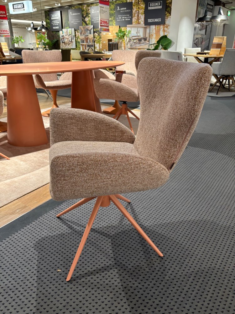 - 3 x Armlehnstuhl in Stoff "Jaquard Lodge blush", 360° drehbar mit Rückholfunktion Gestell: Tulpenfuß