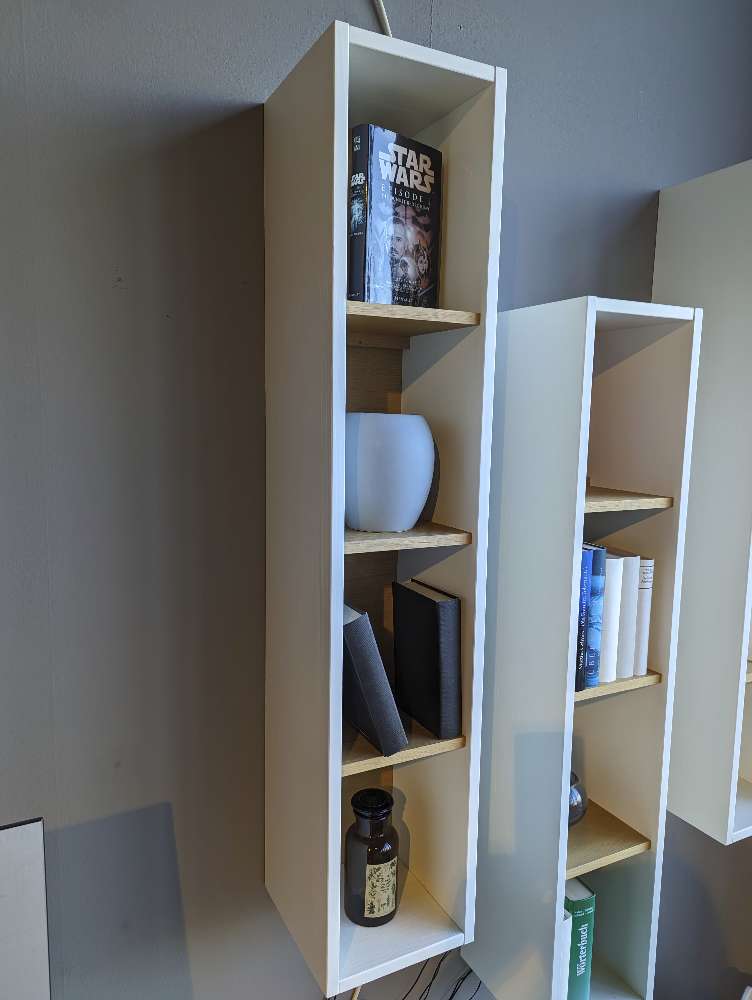 Bemerkung Lowboard und Hängeregale Pinie bianco gebürstet, Akzent Wildeiche