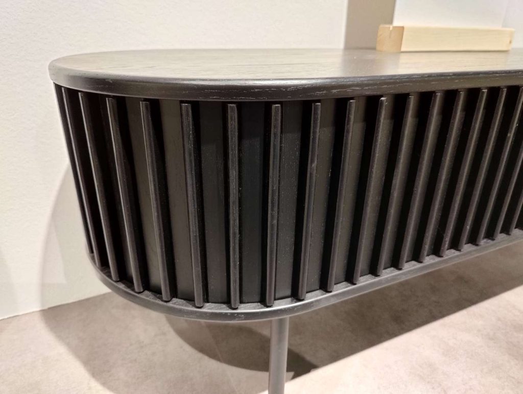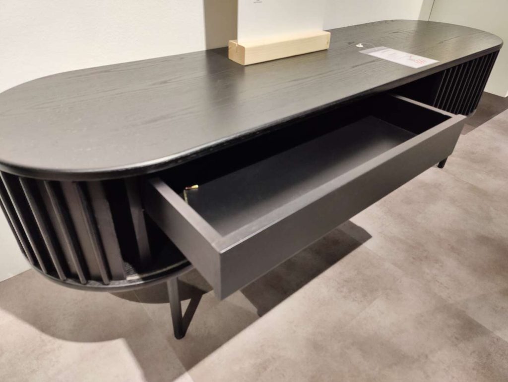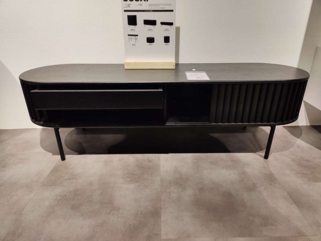 Besonders funktional präsentieren sich die Schiebetüren und der Schubkasten mit Soft-Close-Mechanismus, die für reibungslose Handhabung und eine ruhige, geräuschlose Nutzung sorgen. Die schwarzen Metallbeine runden das Gesamtbild ab und bieten stabile Unterstützung, während sie gleichzeitig für einen leichten, schwebenden Look sorgen. Als Ausstellungsware konzipiert, vereint das Modell Susa gekonnt Stil und Funktion, um Ihren Räumen Eleganz und praktischen Nutzen zu verleihen.