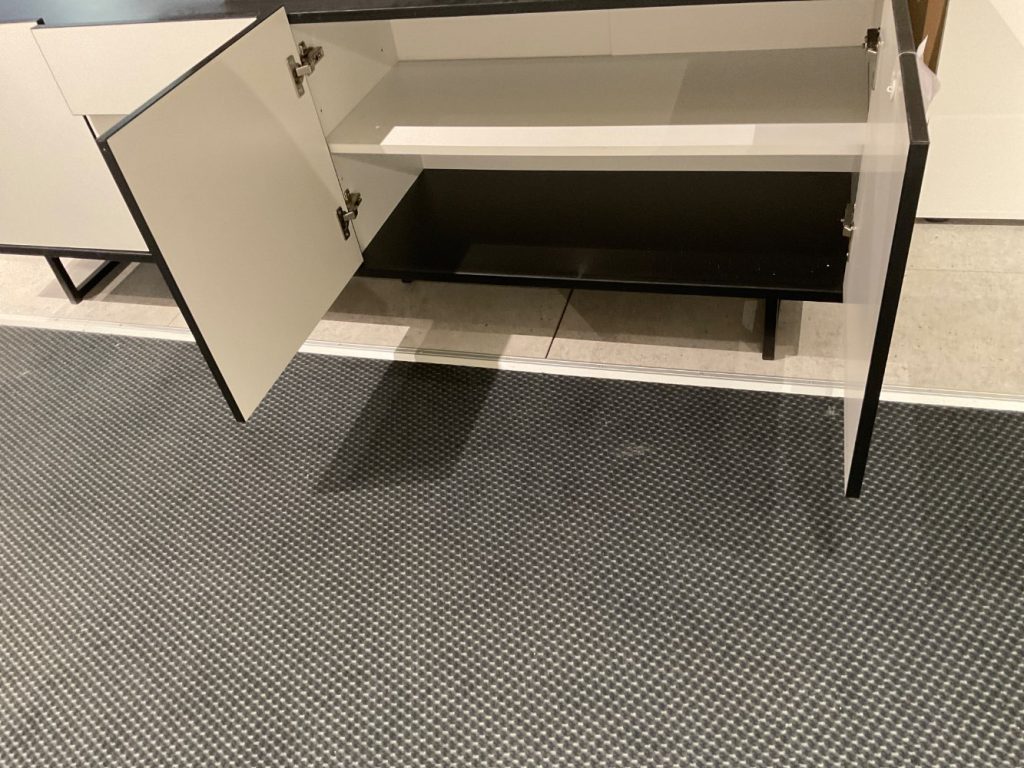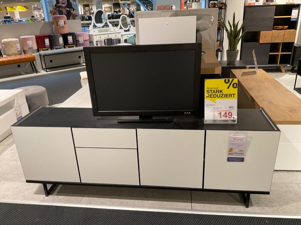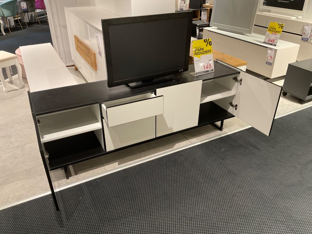 BemerkungDas Modell VEGA vereint minimalistisches Design und funktionale Eleganz in einem bemerkenswerten Möbelstück. Mit einer Breite von 180 cm, einer Höhe von 62 cm und einer Tiefe von 40 cm bietet dieses Ausstellungsstück ausreichend Stauraum und flexible Einsatzmöglichkeiten für verschiedenste Wohnbereiche. Der Korpus und die Front sind in einem zeitlosen Melamin Dekor in Weiß gehalten, das eine ruhige und moderne Atmosphäre schafft. Die kontrastierenden Elemente, insbesondere der obere und untere Boden sowie die Kanten im Dekor Schwarz, verleihen dem Möbelstück zusätzliche Raffinesse und sorgen für einen markanten visuellen Akzent. Mit seiner geradlinigen Formgebung und neutralen Farbgestaltung passt das Modell VEGA sowohl in minimalistisch gestaltete Räume als auch in solche mit eklektischen Einrichtungselementen und setzt dabei stets einen stilvollen Akzent.