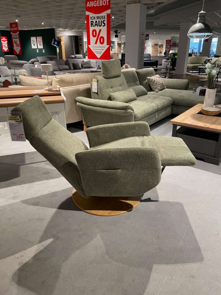 Bemerkung Der TV-Sessel von STEINPOL POLSTERIA präsentiert sich in einem eleganten Orlean-Grün, das jedem Raum eine frische und moderne Note verleiht. Gefertigt aus hochwertiger Mikrofaser, bietet der Sessel nicht nur optisch, sondern auch haptisch ein angenehmes Erlebnis. Die manuelle Relax-Funktion ermöglicht es Ihnen, sich nach einem langen Tag zurückzulehnen und zu entspannen, während die Kopfteilverstellung für zusätzlichen Komfort sorgt. Die Sitztiefe von ca. 55 cm sorgt dabei für ein komfortables Sitzerlebnis, das perfekt auf individuelle Bedürfnisse abgestimmt werden kann. Ein besonderes Highlight des Relaxsessels ist der Drehteller aus geölter Eiche, der nicht nur Stabilität bietet, sondern auch einen stilvollen Akzent setzt. Als Austellungsware präsentiert sich dieser TV-Sessel in bester Verfassung und ist bereit, zum Mittelpunkt Ihres Wohnzimmers zu werden. Der Sessel verbindet Funktionalität mit Design und ist die ideale Wahl für alle, die Komfort und Stil in ihrem Zuhause verbinden möchten.