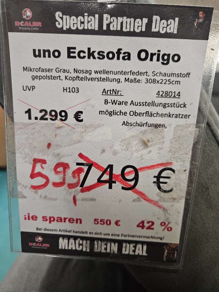 uno Ecksofa Couch Origo Mikrofaser Grau statt 1299€