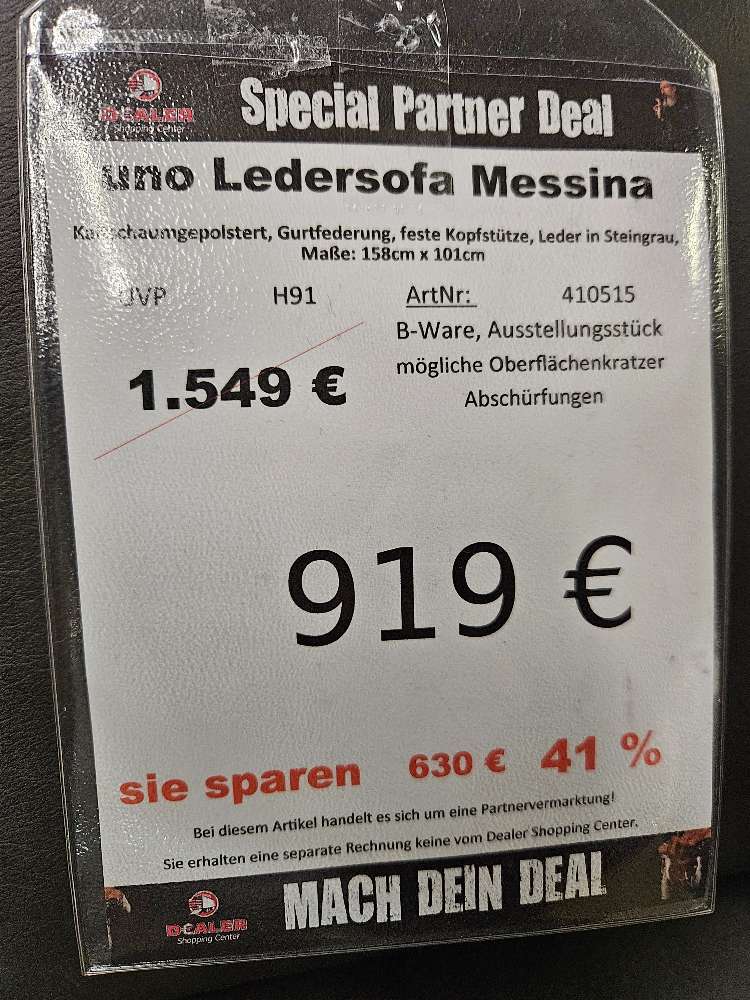 uno Ledersofa Messina 2 Sitzer Steingrau statt 1549€