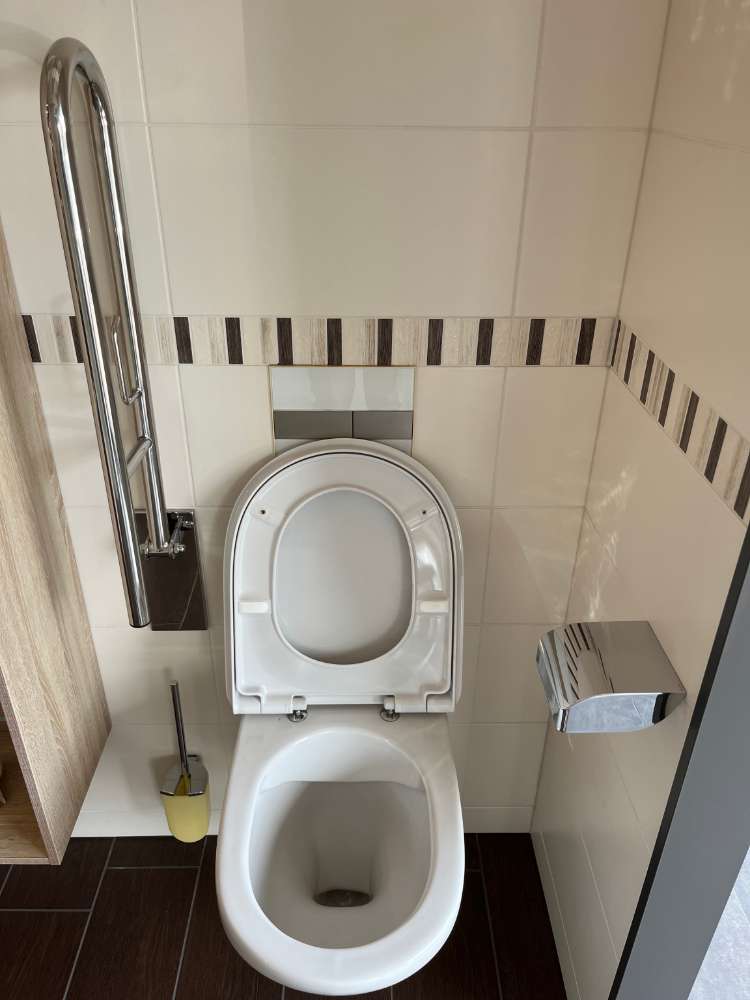 V&B ViCare Wand WC Spülrandlos + Stützklappgriff Chrom 75CM -SELBSTABBAU-