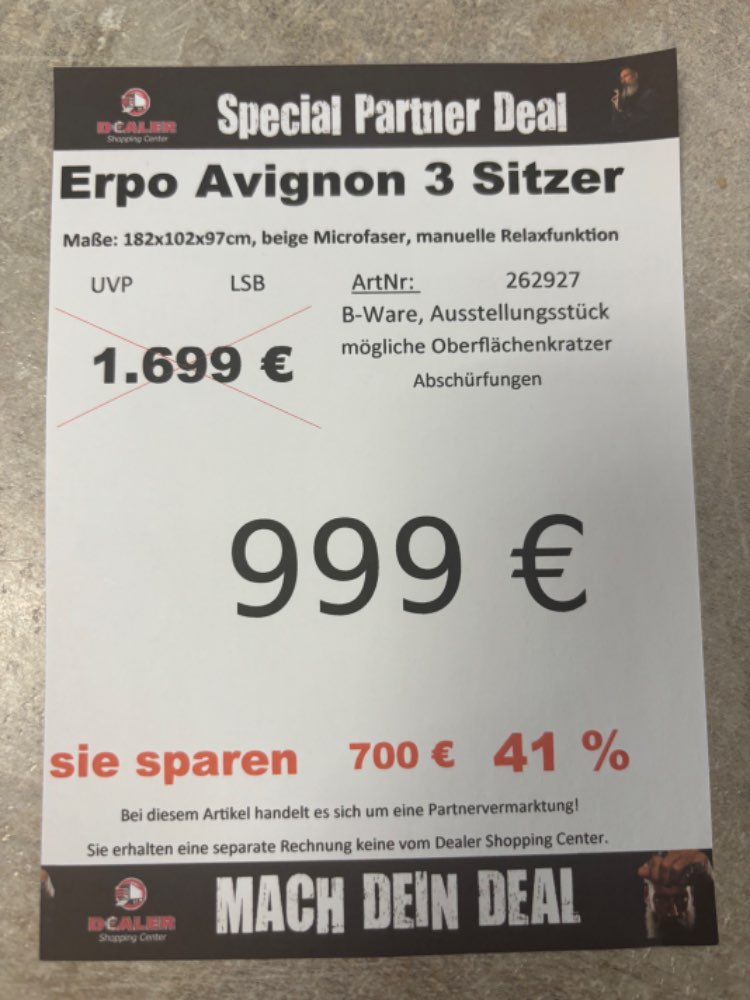 (VE)Erpo Avignon 3 Sitzer Sofa Couch beige microfaser statt 1699€