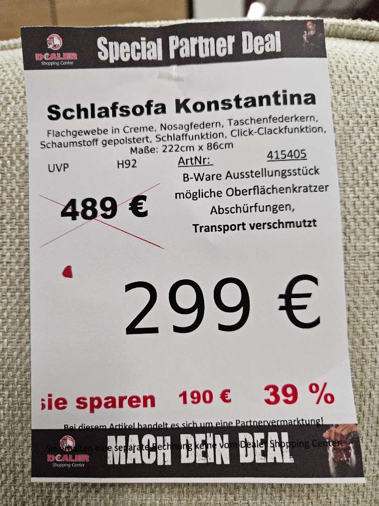 (VE) Schlafsofa Couch Konstantina Flachgewebe Creme statt 489€