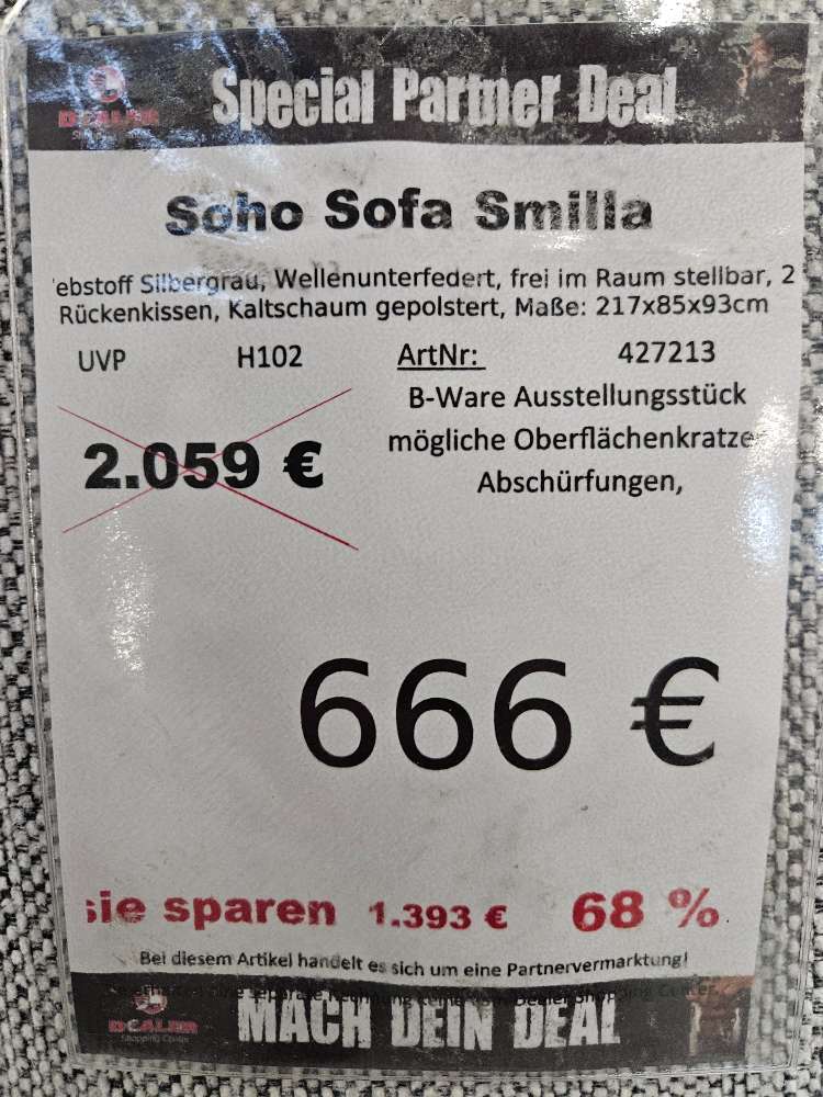 (VE) Soho Sofa Couch Smilla Webstoff Silbergrau statt 2059€