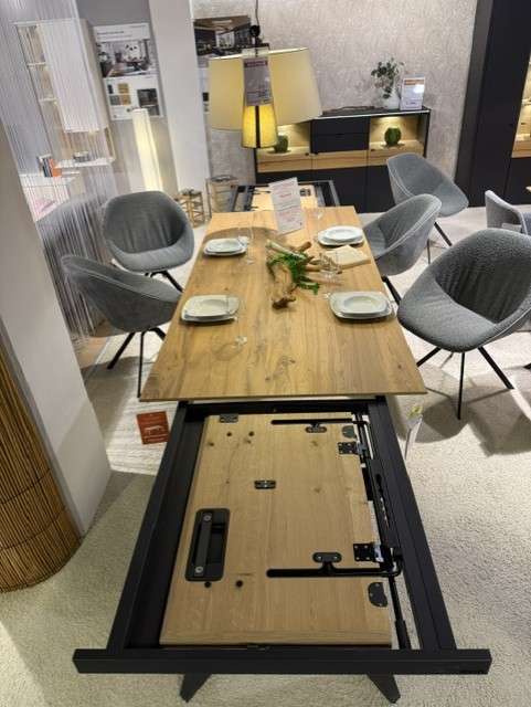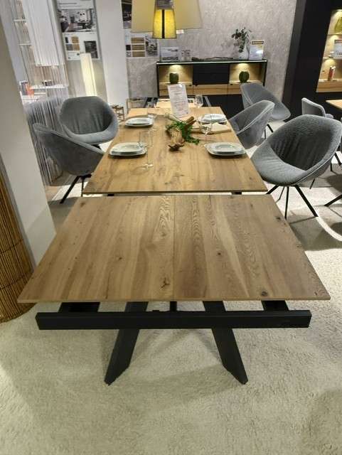 Tisch mit Klappeinlagen zum ausziehen (2x á 75cm) Stühle mit Drehschwingfunktion