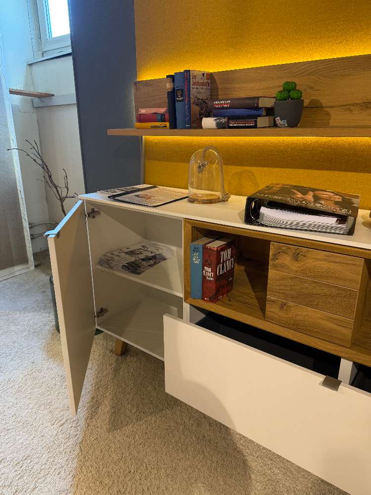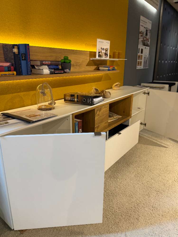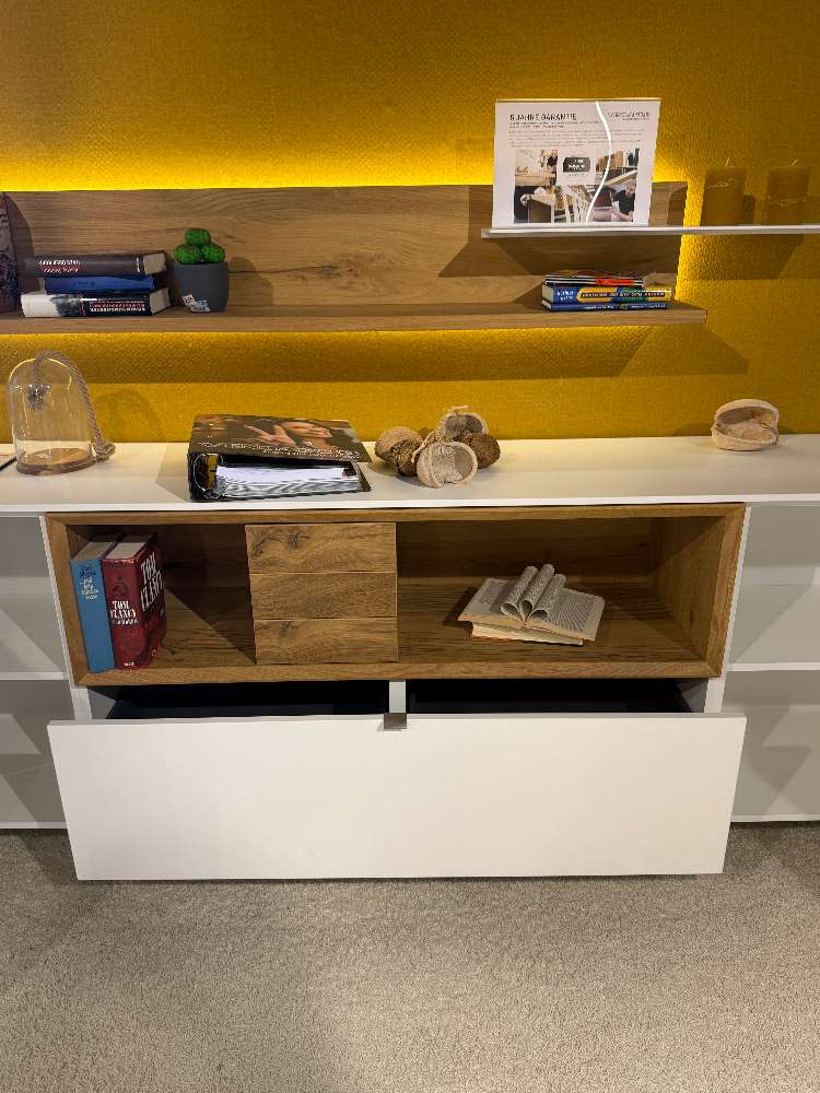 Venjakob Sideboard Lack weiß matt inkl.Wandboard Eiche hell geölt