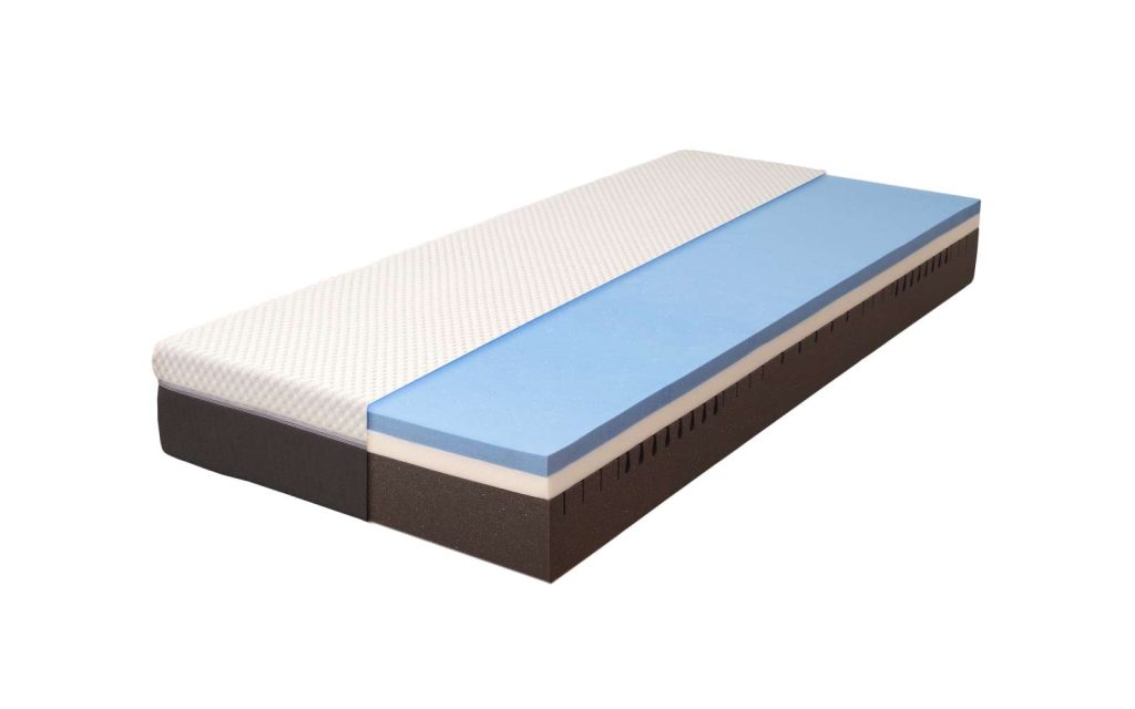 BemerkungViskoelastikschaummatratze mit einem 14,5 cm Komfortschaumkern in Stretch-Doppeltuch weiß, Unterseite: einseitig mit 7 Zonen-Einschnitten (weichere Seite), Liegeseite: stützende Mittelschicht aus 4 cm Komfortschaum und MemoBluViskoelastikschaum mit geringer Temperaturempfindlichkeit in klimatisierendem Jersey Stoff, Bezug abnehmbar und waschbar bis 40° Grad, Liegefläche ca. 140 x 200 cm, Gesamthöhe ca. 22 cm.
