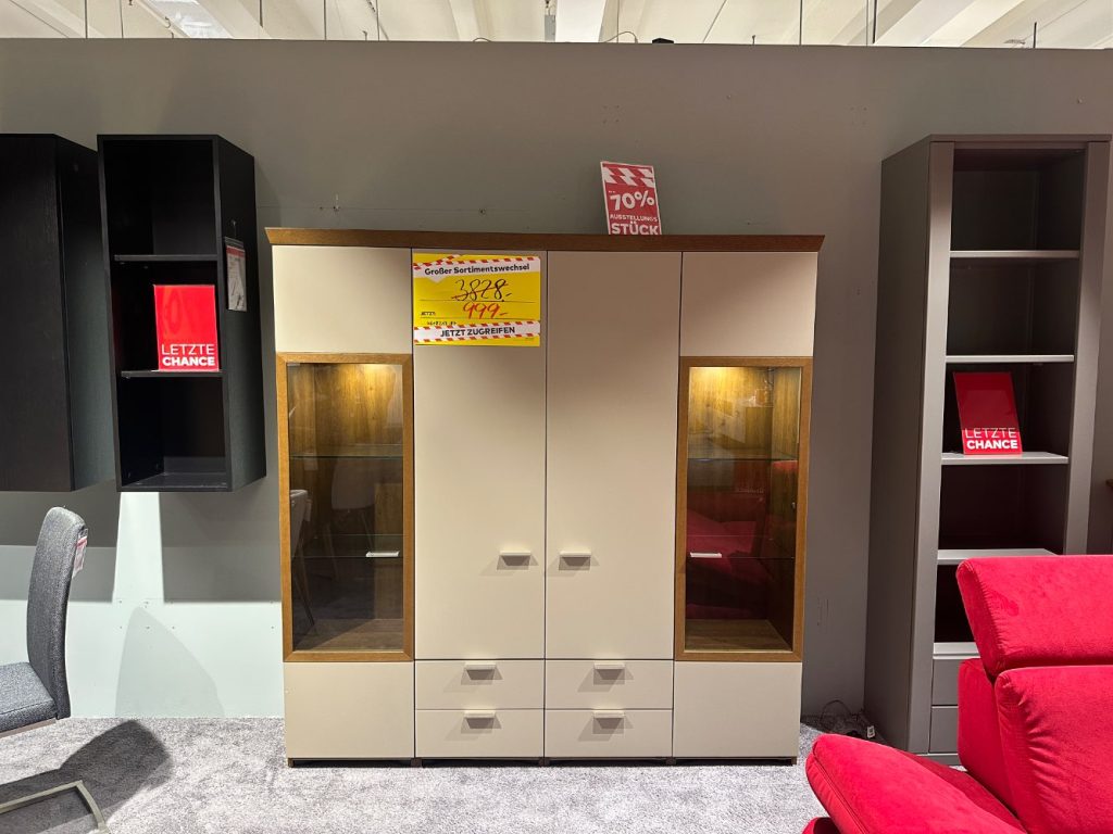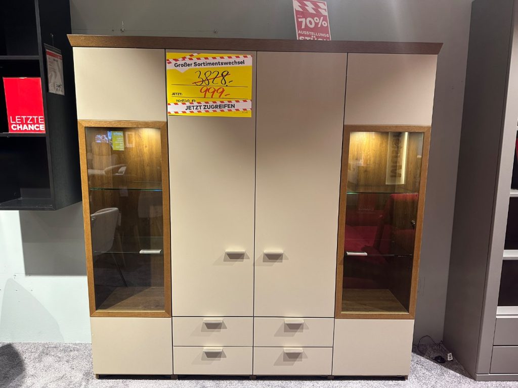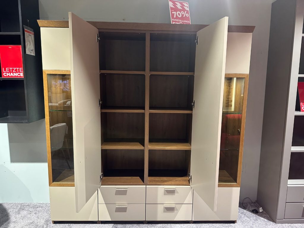 'Arena' Vitrine, Avance inkl. Beleuchtung Lack Caschmere / Asteiche Bourbon B/H/T ca. 183/186/40cm