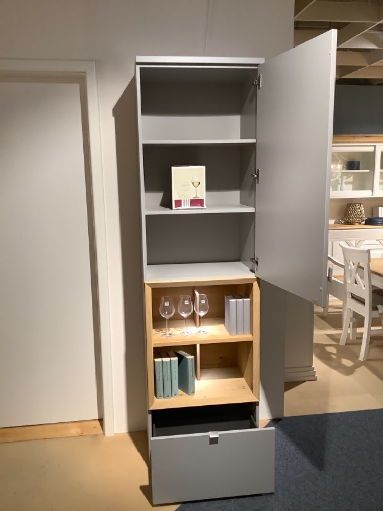 Materialien Lack steingrau matt/Eiche rustico hell geölt furniert.