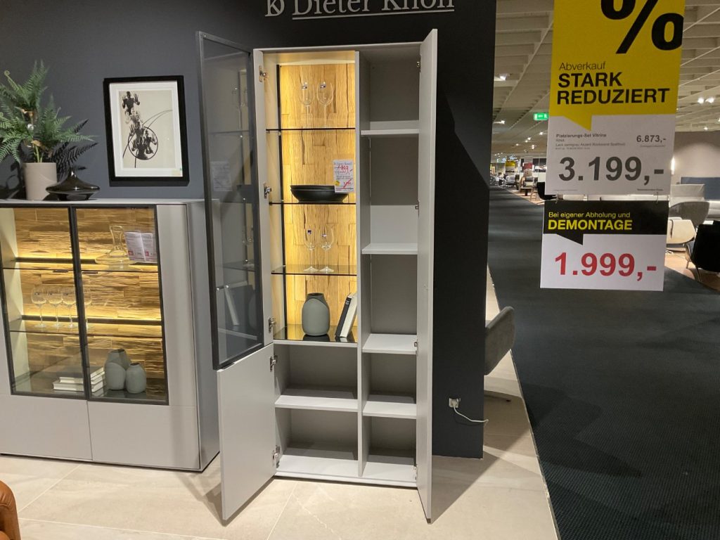 BemerkungDie Vitrine RINA von Wöstmann vereint Eleganz und Funktionalität auf beeindruckende Weise. In einem modernen Look gehalten, besticht dieses Ausstellungsstück vor allem durch seine markante Lackierung in stilvollem Samtgrau. Das hochwertig lackierte Holz sorgt für eine glatte, edle Oberfläche, die sich harmonisch in verschiedene Wohnstile einfügt und dennoch ein Statement setzt. Besonders hervorzuheben ist die Akzent-Rückwand aus massivem Spaltholz, die dem Möbelstück eine subtile, aber wirkungsvolle Tiefe verleiht und für einen faszinierenden Kontrast sorgt.