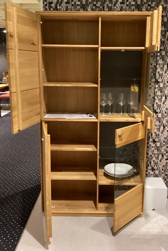 BemerkungDie Vitrine Alexandra von DUDINGER FURNITUR ist ein elegantes Möbelstück, das sowohl durch sein Design als auch durch seine Funktionalität beeindruckt. Als Ausstellungsware präsentiert sich diese Vitrine in einem nahezu neuwertigen Zustand und bietet die perfekte Möglichkeit, Ihre wertvollen Sammlerstücke oder geliebten Erinnerungsstücke stilvoll zur Schau zu stellen. Die durchdachte Konstruktion sorgt für eine optimale Präsentation und schützt gleichzeitig den Inhalt vor Staub und äußeren Einflüssen. Alexandra besticht durch klare Linien und eine zeitlose Ästhetik, die sich mühelos in verschiedene Wohnstile integrieren lässt. Mit der sorgfältigen Verarbeitung und der hohen Materialqualität bleibt diese Vitrine auch über Jahre hinweg ein attraktives Highlight in Ihrem Zuhause. DUDINGER FURNITUR steht für höchste Ansprüche an Design und Qualität, was Alexandra eindrucksvoll unter Beweis stellt. Dieses Ausstellungsstück verbindet klassische Eleganz mit moderner Funktionalität und wird somit zum unverzichtbaren Bestandteil Ihrer Wohnraumgestaltung.