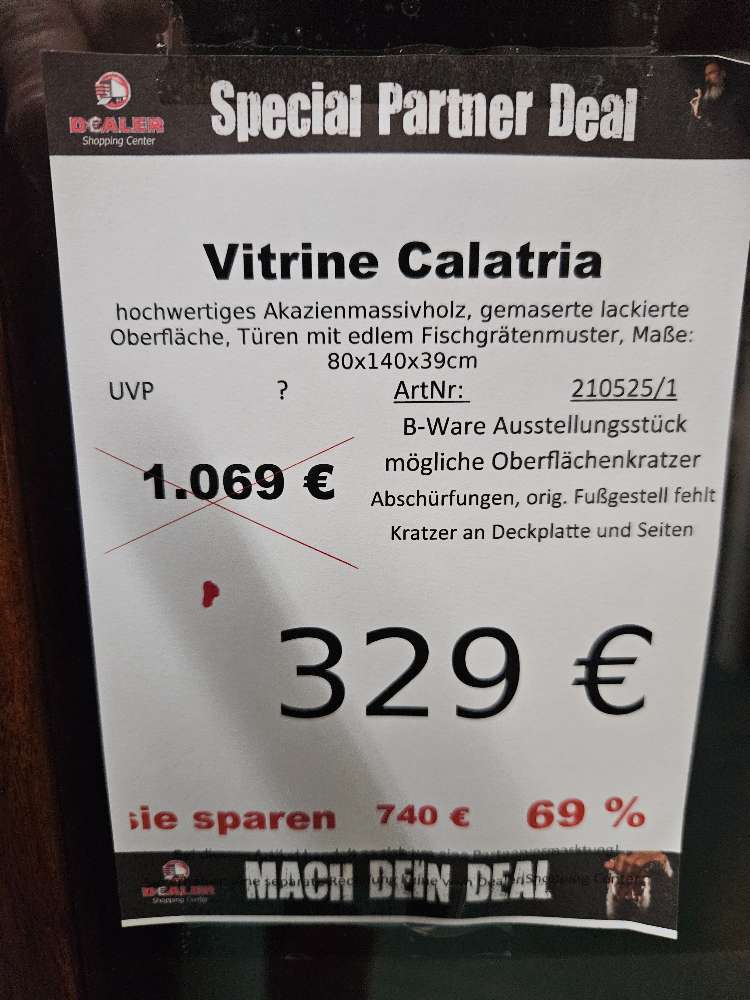 Vitrine Calatria Akazienholz massiv statt 1069€