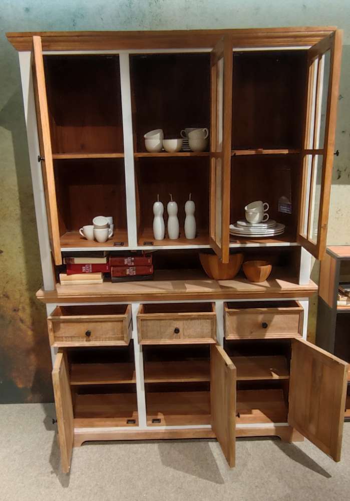 BemerkungDie Vitrine Cottage verkörpert zeitlose Eleganz in jedem Raum. Gefertigt aus natürlichem Akazienholz, besticht sie durch ihre robuste Bauweise und die warme Ausstrahlung des Holzes. Die kunstvoll behandelte Oberfläche in Mango Weiß verleiht dem Möbelstück seinen einzigartigen Charakter und fügt sich nahtlos in verschiedenste Wohnkonzepte ein. Mit ihren großzügigen Maßen von ca. 140x205x50 cm bietet die Vitrine reichlich Platz, um Geschirr, Sammlerstücke oder persönliche Schätze stilvoll zu präsentieren. Als Ausstellungsware bietet sie ein hervorragendes Preis-Leistungs-Verhältnis und bringt gleichzeitig einen Hauch von Exklusivität in Ihr Zuhause. Die von - SONSTIGE - hergestellte Vitrine kombiniert Funktionalität und Ästhetik und ist ein wahres Highlight für Liebhaber von natürlichen Materialien und hochwertigem Design.