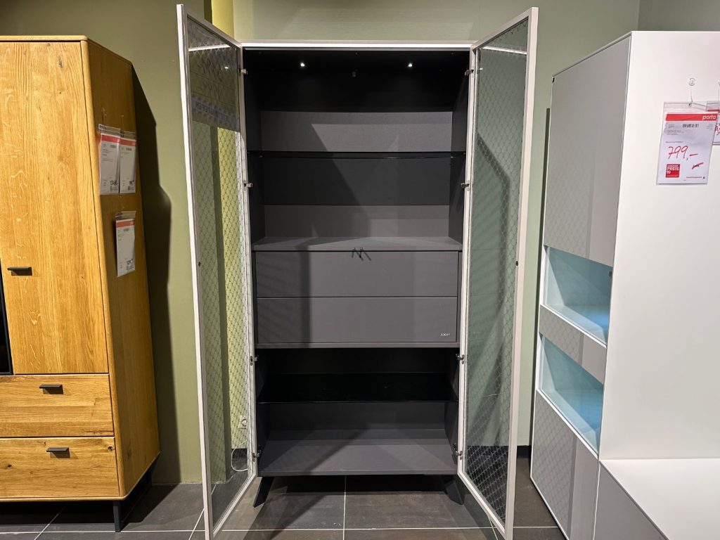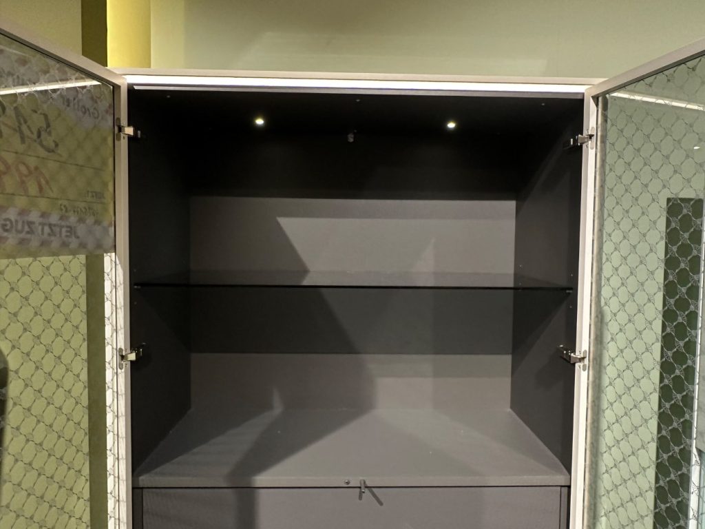 Vitrine inkl. Beleuchtung Lack Kristallgrau Hochglanz