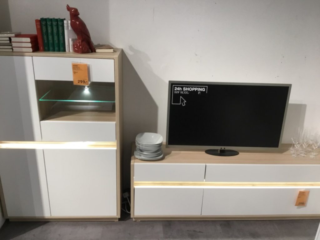 Vitrine mit Licht breite 95x141,5xt42 cm einzelpreis 299 Euro Lowboard mit Licht breite 173,5 x58,2t42 cm 299 euro