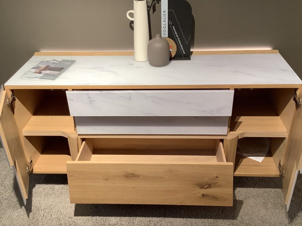 Bemerkung Die VOGLAUER Kommode, gefertigt aus hochwertigem Holz, ist ein wahres Schmuckstück, das sowohl durch seine zeitlose Eleganz als auch durch die Qualität der handwerklichen Verarbeitung beeindruckt. Als Ausstellungsstück bietet dieses Möbelstück einen einzigartigen Einblick in die meisterliche Handwerkskunst, für die der renommierte Hersteller VOGLAUER bekannt ist. Die natürliche Holzstruktur verleiht der Kommode eine warme und einladende Ausstrahlung, während das durchdachte Design sowohl Stil als auch praktische Funktionalität vereint. Die robusten Materialien sorgen dafür, dass die Kommode nicht nur schön anzusehen ist, sondern auch den Anforderungen des Alltags mühelos standhält. Als Teil der Kategorie der Kommoden ist dieses Möbelstück ideal, um jedem Raum eine harmonische und ansprechende Note zu verleihen. Ob im Wohnzimmer, Schlafzimmer oder Eingangsbereich – die VOGLAUER Kommode fügt sich nahtlos in verschiedene Einrichtungsstile ein und bietet gleichzeitig ausreichend Stauraum für persönliche Gegenstände. Ein Möbelstück, das sowohl optisch als auch funktional überzeugt und jedem Raum das gewisse Etwas verleiht.