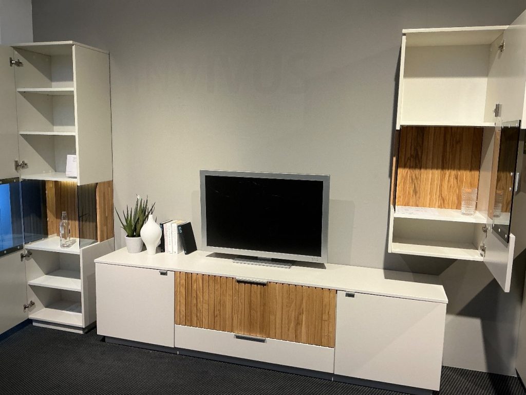 Die großzügigen Maße von 310 cm Breite, 204 cm Höhe und 45 cm Tiefe bieten reichlich Stauraum und machen die Linea Q zur idealen Wahl für alle, die keine Kompromisse zwischen Funktionalität und Stil eingehen möchten. Das Floatglas bringt eine zusätzliche Dimension von Leichtigkeit und Transparenz in das Design, wodurch dieses Möbelstück insgesamt ein Gefühl von modernem Luxus und zeitgenössischem Flair ausstrahlt. Als Ausstellungsstück vereint die Linea Q Design und Zeitlosigkeit auf beeindruckende Weise.