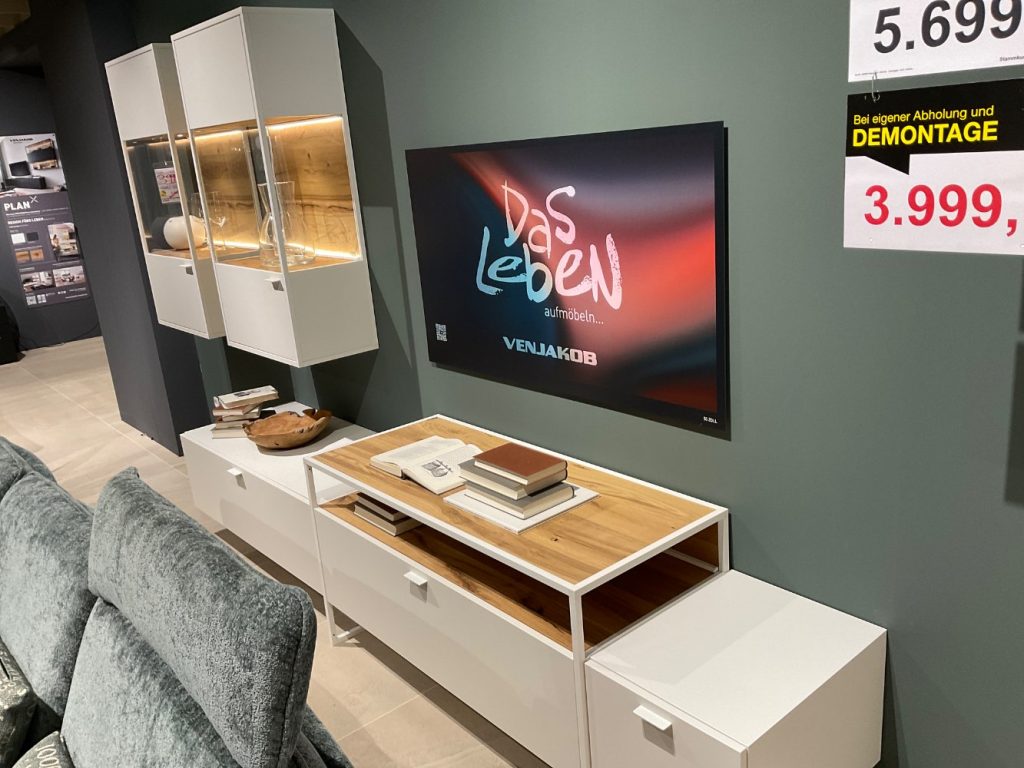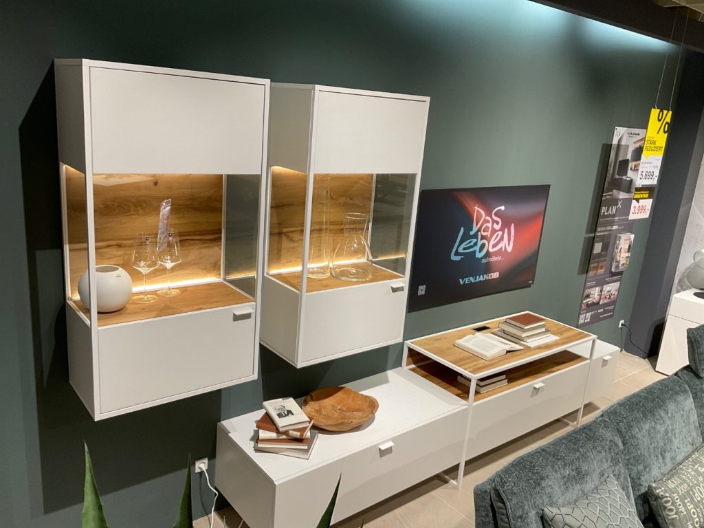 Dieses Ausstellungsstück wurde sorgfältig gestaltet, um sowohl ästhetisch ansprechend als auch praktisch zu sein. Der eingebaute Kabeldurchlass sorgt dafür, dass alle technischen Geräte ordentlich und ohne sichtbares Kabelgewirr angeschlossen werden können, was Ihrem Wohnraum ein klares und aufgeräumtes Erscheinungsbild verleiht. Als Teil der renommierten VENJAKOB-Kollektion erfüllt der Plan X6 höchste Ansprüche an Qualität und Design und bietet somit eine gelungene Kombination aus stilvoller Optik und praktischen Funktionen für Ihr Zuhause.