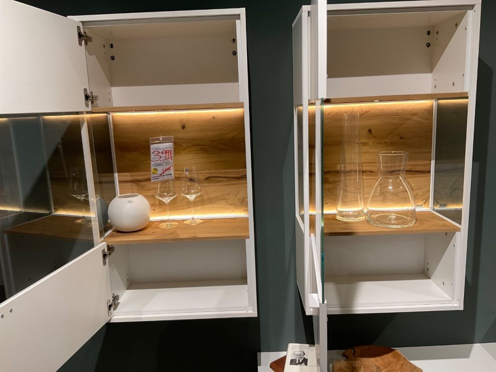 BemerkungDer Plan X6 von VENJAKOB verkörpert Eleganz und Funktionalität in einem beeindruckenden Design. Das aus hochwertigem Holz gefertigte Möbelstück besticht durch seine großzügigen Maße von ca. 346 cm in der Breite, 206 cm in der Höhe und 53 cm in der Tiefe. Seine imposante Präsenz wird durch die integrierte Beleuchtung noch hervorgehoben, die für eine stimmungsvolle Atmosphäre sorgt und das Holz in warmen Tönen erstrahlen lässt.
