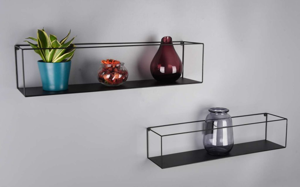Wandregal-Set Lisa Ausführung aus Metall in schwarz lackiert, 2-teiliges Set, B/H/T ca. 65 x 15 x 15 cm.