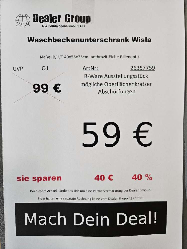 Waschbeckenunterschrank Wisla statt 99€
