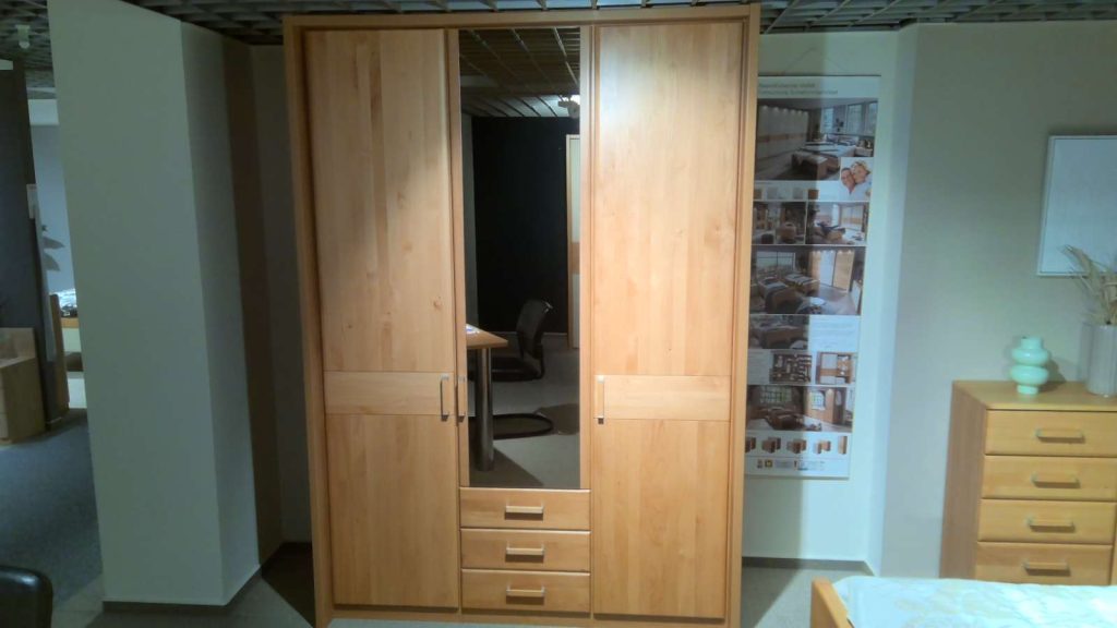 BemerkungDas Modell Lausanne von WIEMANN bietet eine elegante und durchdachte Lösung für Ihr Schlafzimmer. Ausgestellt in einem warmen Erle teilmassiv, verleiht es Ihrem Raum eine natürliche und beruhigende Atmosphäre. Das Bett mit den Maßen von etwa 100 x 200 cm ist ideal für Einzelpersonen, die Wert auf Komfort und Stil legen. Ergänzt wird das Set durch einen geräumigen Kleiderschrank mit den Dimensionen von etwa 150 cm Breite, 216 cm Höhe und 58 cm Tiefe, der ausreichend Platz für Ihre Garderobe bietet und durch sein klares Design überzeugt. Abgerundet wird das Ensemble durch eine funktionale Kommode mit Maßen von circa 93 cm Breite, 89 cm Höhe und 37 cm Tiefe, die zusätzlichen Stauraum für Ihre persönlichen Gegenstände schafft. Das Modell Lausanne ist als Ausstellungsware erhältlich und vereint praktische Funktionalität mit zeitloser Ästhetik, und bereichert jedes Zuhause mit seinem harmonischen Erscheinungsbild.