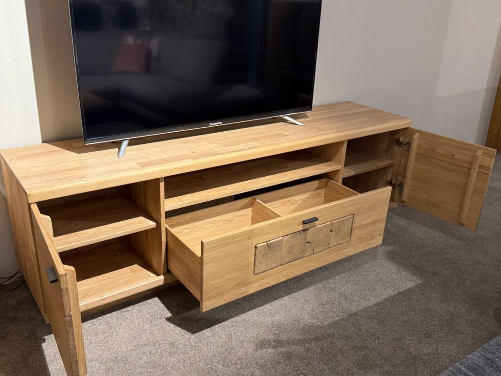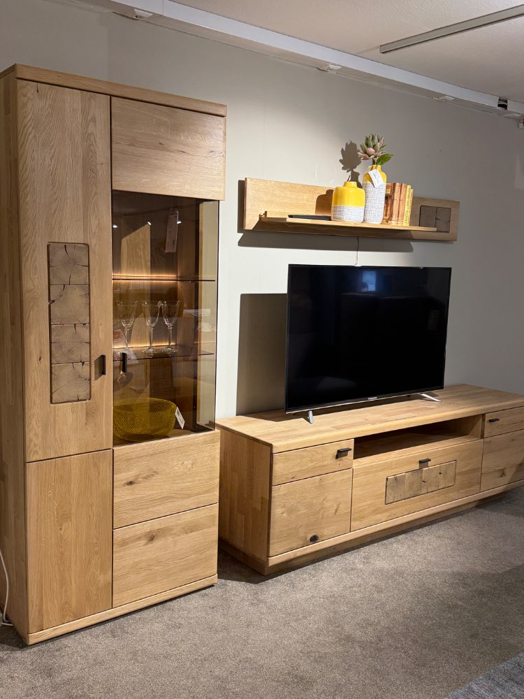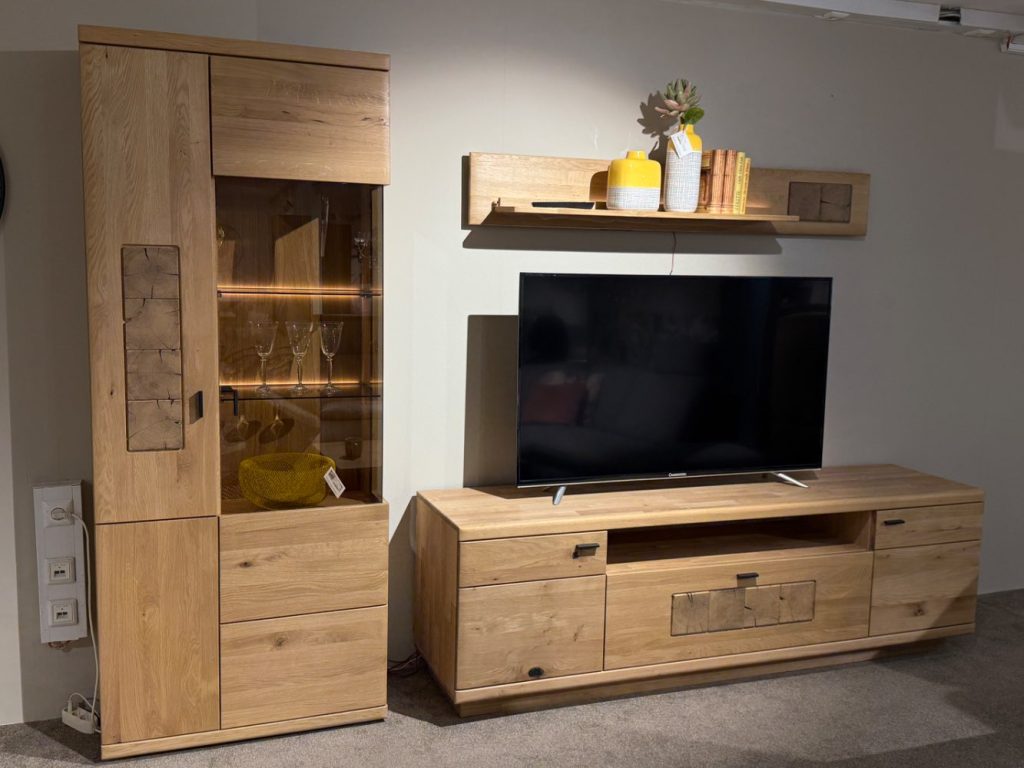 BemerkungEntdecken Sie die beeindruckende Wohnwand Palma von MCA, die in einem raffinierten Ast/Balkeneiche-Finish erstrahlt. Diese Austellungsware kombiniert geschickt natürliche Eleganz mit moderner Technologie und wird zum Blickfang in jedem Raum. Die einzigartige Oberfläche betont die natürliche Maserung des Holzes durch eine raffinierte Applikation aus Hirnholz Kristalleiche, die dem Möbelstück eine besondere Tiefe verleiht.