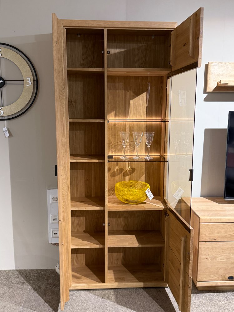 Mit ihren großzügigen Maßen bietet die Kombi-Vitrine mit 83 cm Breite, 203 cm Höhe und 37 cm Tiefe reichlich Platz, um Ihre Dekorationsgegenstände stilvoll zu präsentieren. Das TV-Element mit 205 cm Breite, 64 cm Höhe und 50 cm Tiefe bietet ausreichend Raum für Ihre Entertainment-Systeme und sorgt für einen harmonischen Gesamteindruck. Das zusätzliche Wandboard mit seinen Maßen von 165 cm Breite, 24 cm Höhe und 25 cm Tiefe rundet das Ensemble perfekt ab.