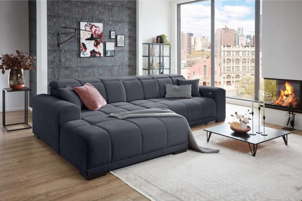 inkl. elektrischer XXL-Sitz- tiefenverstellung, mit 3 manuell verstellbaren Kopfteilen und 2 Zierkissen.
