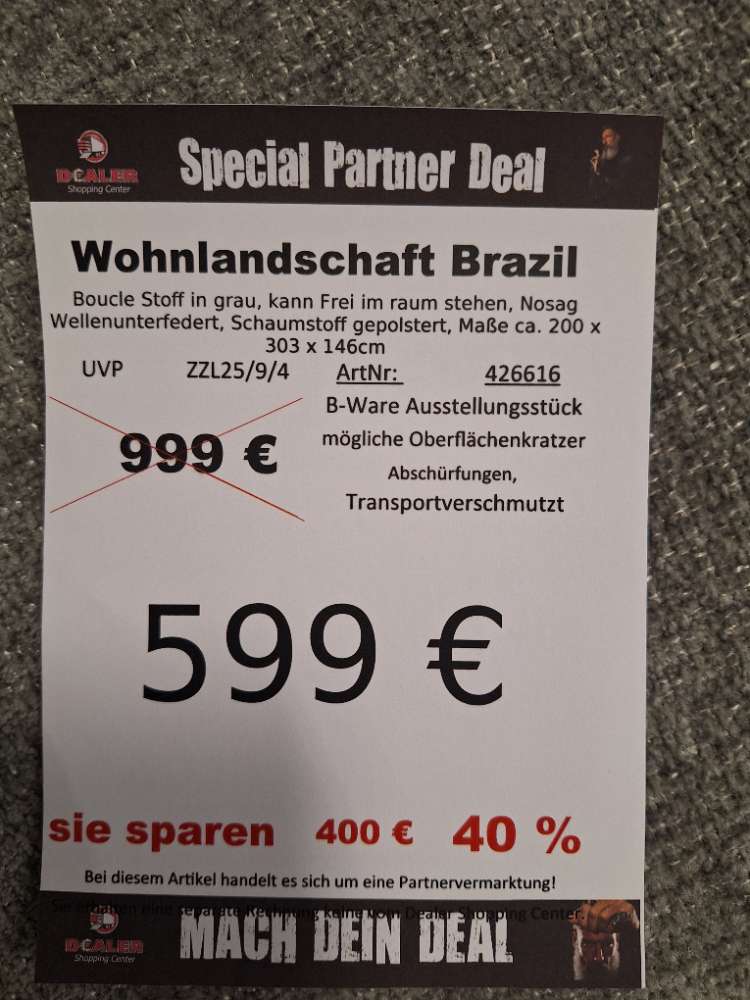 Wohnlandschaft Brazil, Sofa U-Form Bouclet Stoff, statt 999 €