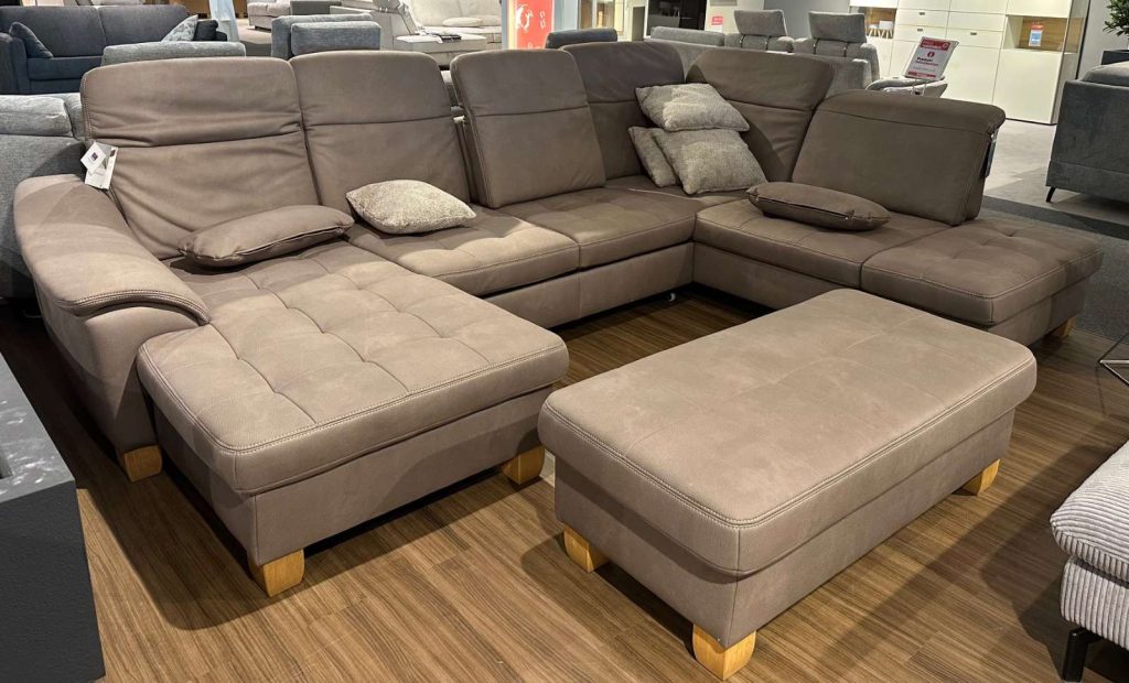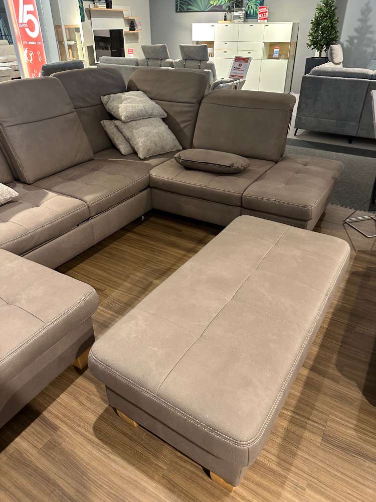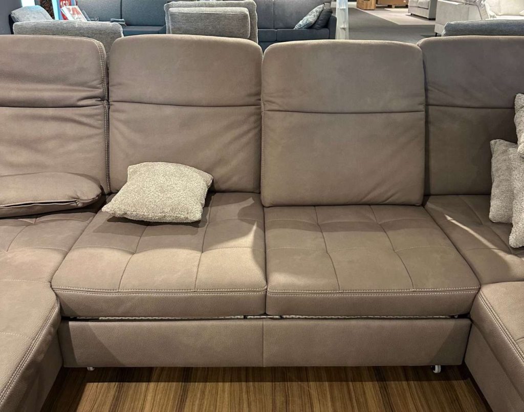 Diese Austellungsware punktet nicht nur mit ihrem attraktiven Design, sondern auch mit einer Vielzahl von Extras, die den täglichen Gebrauch besonders angenehm machen. Der integrierte Federkern in der Sitzfläche sorgt für einen hohen Sitzkomfort, während die verstellbare Sitztiefe und das Kopfteil individuelle Anpassungen und besonderen Komfort ermöglichen. Die praktische Bettfunktion verwandelt die Wohnlandschaft im Handumdrehen in einen gemütlichen Schlafplatz, wann immer zusätzlicher Raum benötigt wird.