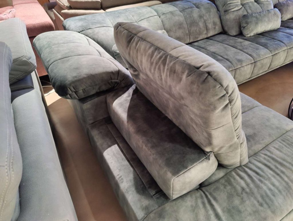Bemerkung Die Wohnlandschaft MM-MP1152 von MEGAPOL ist das Herzstück jeder stilvollen Einrichtung und besticht durch ihre elegante Opalfarbe. Der samtartige Stoff mit Vintageeffekt verleiht dem Möbelstück eine zeitlose Eleganz, die sich nahtlos in verschiedene Wohnkonzepte integrieren lässt. Gefertigt aus 100% Polyester, kombiniert das Modell robuste Langlebigkeit mit einem angenehmen Sitzgefühl. Die großzügigen Maße von 219 x 383 x 195 cm bieten ausreichend Platz für Familie und Gäste, während die Kopfteilverstellung und die dreifache Sitztiefenverstellung individuellen Komfort ermöglichen. Die drei Nierenkissen sorgen für zusätzlichen Halt und Bequemlichkeit. Abgerundet wird das Design durch schwarze Metallfüße, die einen stabilen und modernen Akzent setzen. Diese Ausstellungseinheit transportiert ein Gefühl von Luxus und Relaxation, ideal für entspannte Abende oder gesellige Zusammenkünfte.