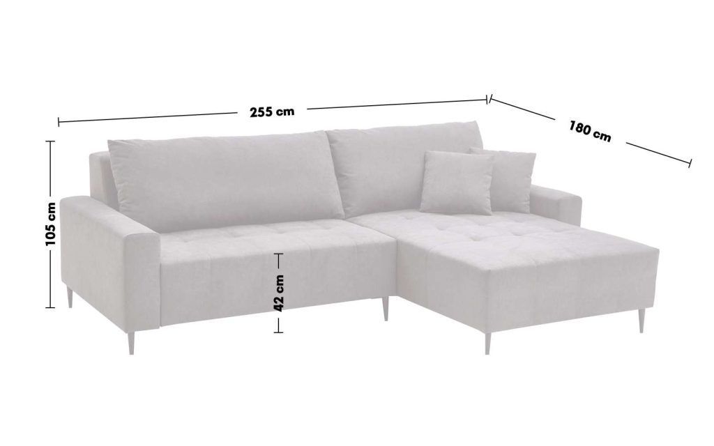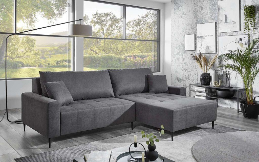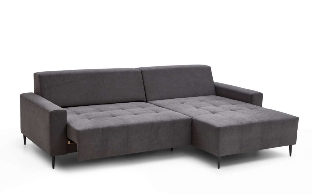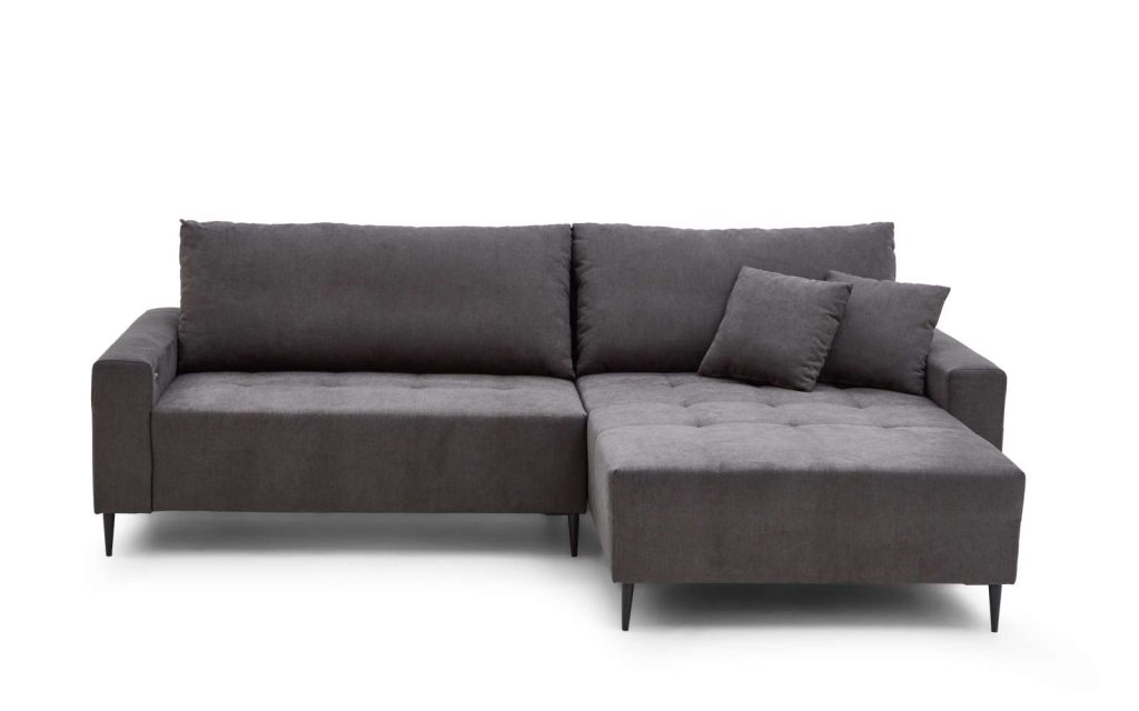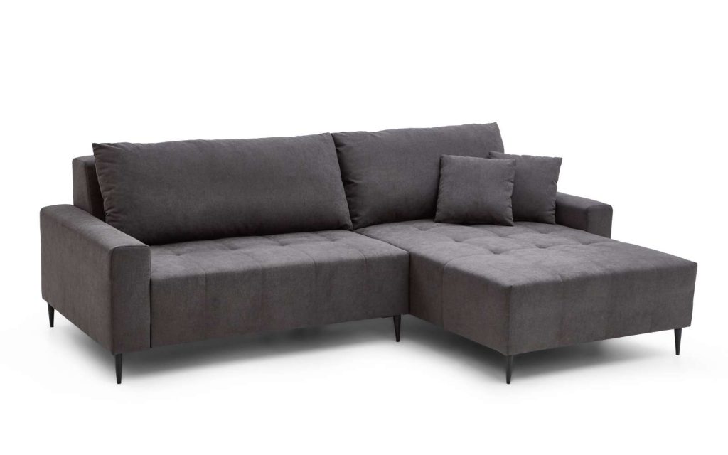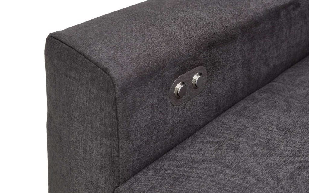 Ausführung Otto Normane rechts, Dilja grau mit 2 Kissen, Motor, Metallfüsse schwarz ca.255x 88-105x180cm