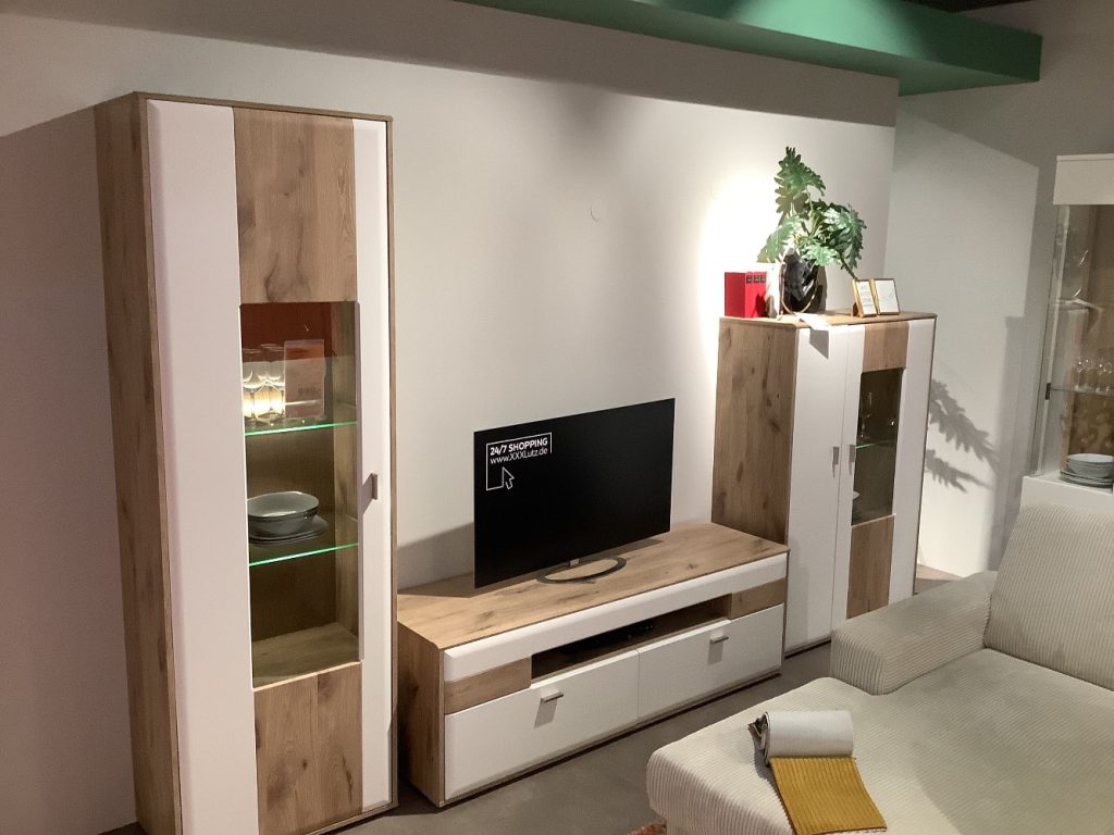 AusführungMIT EINLEGEBÖDEN, WOHNWAND BESTEHEND AUS 1 KOMMODE ,1 VITRINE , 1 TV ELEMENT