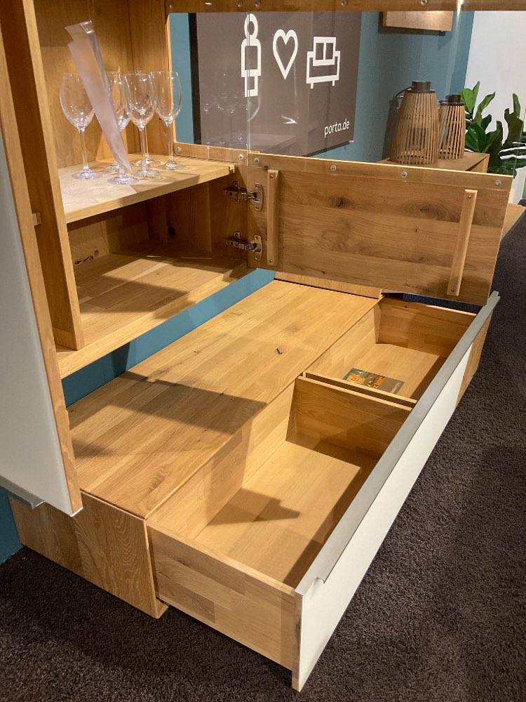 BemerkungFront mit Hirnholzakzent B/H/T ca. 325/185/47 cm massiv bianco, gebürstet. Da Ausstellungsstück sind leichte Gebrauchsspuren möglich. Die Ware kann bei Porta in Gütersloh besichtigt werden.