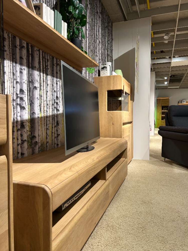 B/H/T 1x Lowboard: 180x53x50, WILDEICHE MASSIV, FARBE: WILDEICHE BIANCOTON 1x Vitrine: 63x201x41, WILDEICHE MASSIV, WILDEICHE BIANCOTON 1x Highboard: 95x138x41, WILDEICHE MASSIV, WILDEICHE BIANCOTON 1x Wandboard: 145x32x24, WILDEICHE MASSIV, WILDEICHE BIANCOTON