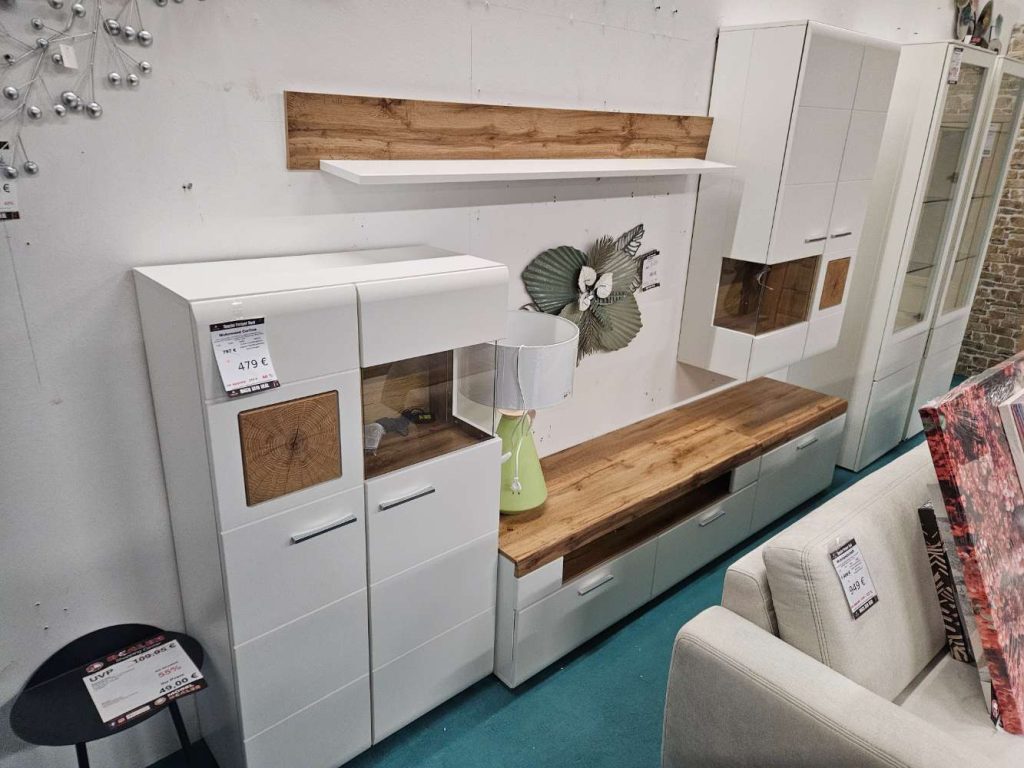 Wohnwand Cortina weiß Eiche Nachbildung statt 797€