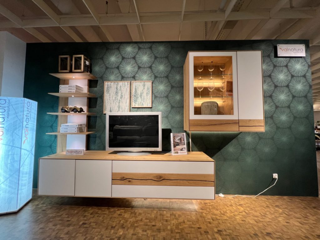 WOHNWAND EICHE MASSIV GLAS WEISS