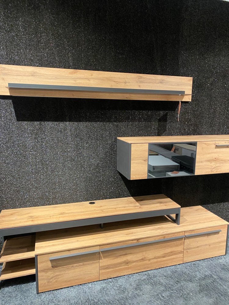 Wohnwand Ohne Beleuchtung Eichenfarbe, Grau B/H/T 319x178x50