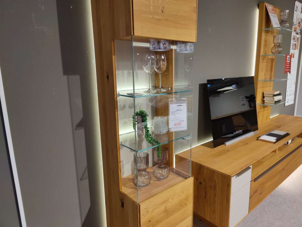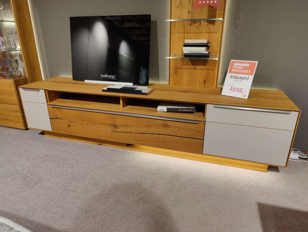 BemerkungDie Wohnkombination IL 2020 von INTERLIVING vereint zeitloses Design mit natürlicher Eleganz. Hergestellt aus massivem Asteichenholz, verleiht das Möbelstück jedem Raum eine warme und einladende Atmosphäre. Die Kombination aus der geölten Oberfläche und den Designakzenten in Risseiche sorgt für einen besonderen optischen Reiz und hebt die natürliche Maserung des Holzes hervor. Mit den großzügigen Maßen von ca. 310 x 206 x 54 cm bietet dieses Ausstellungsstück ausreichend Platz für alle Ihre Wohnbedürfnisse.