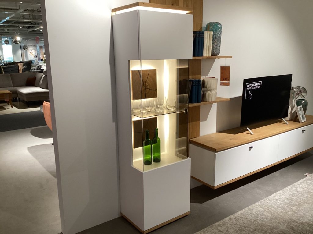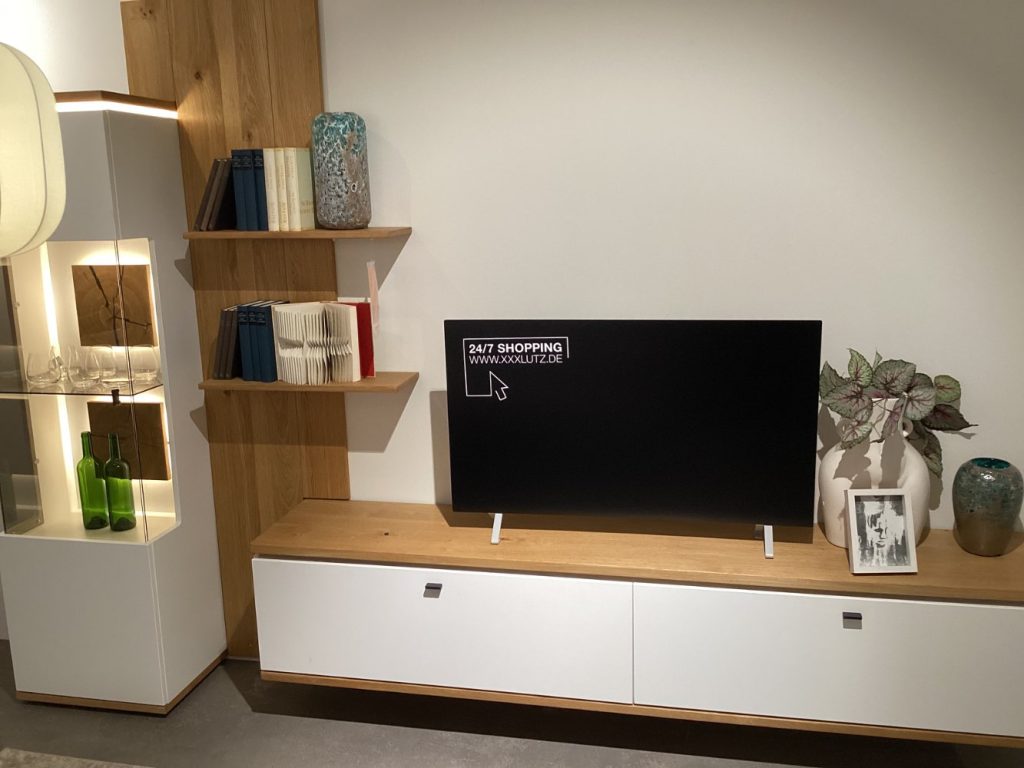 BemerkungDie Wohnwand Matadi von NOVEL Living vereint zeitlose Eleganz mit moderner Funktionalität. Als Ausstellungsstück präsentiert sie sich in makellosem Zustand und besticht durch die harmonische Kombination aus Holz und Glas. Die robusten Holzelemente strahlen natürliche Wärme und eine einladende Atmosphäre aus, während die Glaseinsätze einen Hauch von Leichtigkeit und Raffinesse hinzufügen. Die Oberflächen des Möbelstücks sind sorgfältig geölt und lackiert, was nicht nur die Schönheit des Holzes hervorhebt, sondern auch den Schutz und die Langlebigkeit des Materials gewährleistet. Dieses Möbelstück bietet nicht nur ausreichend Stauraum, sondern setzt auch einen stilvollen Akzent in jedem Wohnzimmer. Die Wohnwand Matadi von NOVEL Living ist mehr als nur ein Aufbewahrungsmöbel – sie ist ein Statement für anspruchsvolles Wohnen und zieht alle Blicke auf sich, egal wo sie platziert wird.