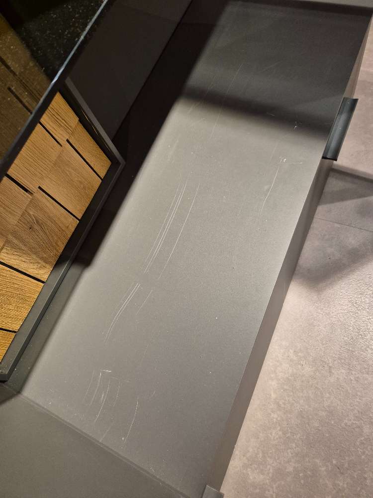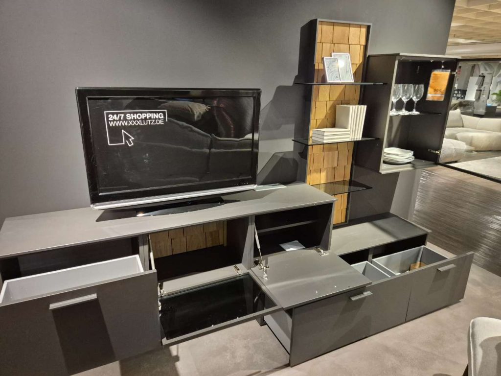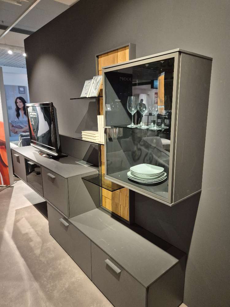 Wohnwand Schiefergrau Lack matt, Eiche massiv XXXLutz Fellbach