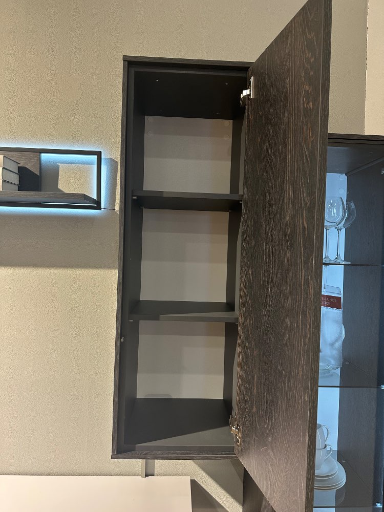 BemerkungWohnwand bestehend aus: 1x Lowboard, ca. BHT 183x68x47cm, 1x Wandboard, ca. BHT 147x21x37cm, 1x Hängeelement, ca. BHT 38x108x37cm, 1x Hängevitrine, ca. BHT 38x144x37cm, inkl. folgendem Zubehör: 1x LED-Controller, 1x LED-Rahmenbeleuchtung Wandboard, 1x TV-Vorbereitung, schönes Wohnprogramm mit Lowboard mit mehreren Schubladen (ideal für Stauraum und TV) in Quarzgrau, Hängeschrank mit ausreichend Stauraum, Hängevitrine mit Glastür und Glaseinlegeböden (perfekt zur Präsentation von Gläsern oder Dekoration), Wandregal mit LED Beleuchtung welches z.B. Bücher und Dekoration stilvoll in Szene setzt in Eiche Flamed Wood, Füße in Schiefer schwarz, modernes und zeitloses Design, Ohne Dekoration!