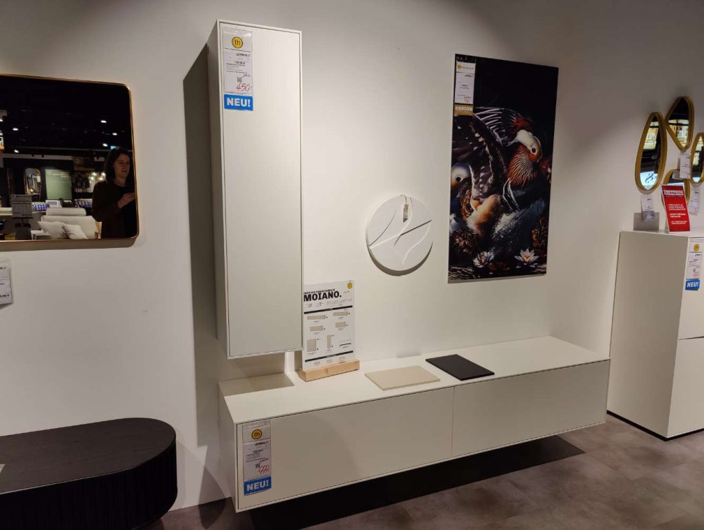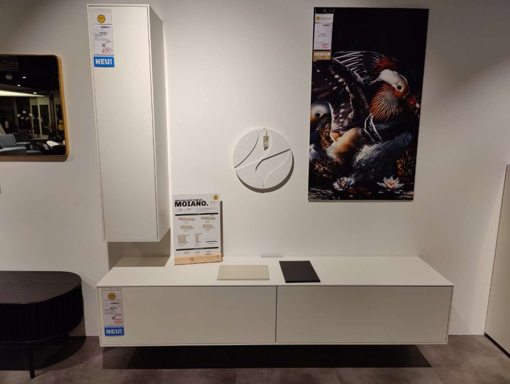 Da es sich um Ausstellungsware handelt, können Sie sicher sein, dass Sie ein Produkt erhalten, das nicht nur aufgrund seiner Funktionalität, sondern auch wegen seines ästhetischen Charmes bei Kunden beliebt ist. Das Moiano Set ist die perfekte Wahl für all jene, die auf der Suche nach eleganter und funktionaler Inneneinrichtung sind.